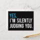 A little judgemental eh! this humourous shirt features the words "I'm silently judging you" in bold text. A funny way to let the world know you are monitoring their every move with one eyebrow up.