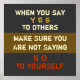 WHEN YOU SAY YES TO OTHERS MAKE SURE YOU ARE NOT SAYING NO TO YOURSELF. Spread the word!