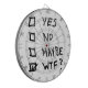 The words,"Yes," "No," "Maybe," and "WTF?" with check boxes next o them. The words are written in black magic marker on a white background. Makes a great gift!