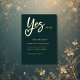 This elegant black and gold wedding design features the phrase “Yes we do!” with the word “Yes” written in a romantic gold script — the sweeping Y cleverly incorporates a heart shape, symbolising love and unity. The minimal chic layout combines bold modern typography with timeless gold accents, creating a luxurious look perfect for formal events, black tie celebrations, or vibrant evening weddings. The names are displayed in graceful calligraphy, adding a touch of personal charm to this sophisticated design.