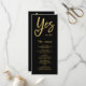 This elegant black and gold wedding design features the phrase “Yes we do!” with the word “Yes” written in a romantic gold script — the sweeping Y cleverly incorporates a heart shape, symbolising love and unity. The minimal chic layout combines bold modern typography with timeless gold accents, creating a luxurious look perfect for formal events, black tie celebrations, or evening weddings. The names are displayed in graceful calligraphy, adding a touch of personal charm to this sophisticated stationery.