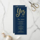 Yes We Do navy blue Gold wedding menu and program all in one card