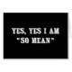 The reply when someone exclaims "You're so mean!" of course is "Yes, yes I am 'so mean'".