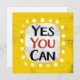 "Yes You Can" is a cute inspirational or motivational quote with a white accent shape surrounded by white textured whimsical dots.