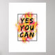 Yes You Can, Motivational, Inspirational, Modern Poster