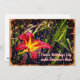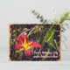 A slightly vintage looking photograph of a red and yellow day lily with drops of water on the petals and leaves. Customise the text if your wish.