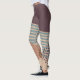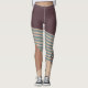 These leggings have a mid-century modern abstract design of a blue line, a tan triangle, and a brown circle made of dots on a field of dark eggplant and cream. If you want the same design with different colours, message me.