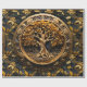 Yggdrasil Tree of Life and Sacred Knowledge. Viking tree of immortality. Golden leaves and roots. Beautiful pattern.