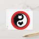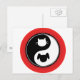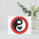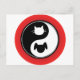 An atypical yin yang symbol inside a red circle, with a cat and dog engaged in the endless chase.