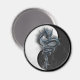 The design on this Round Magnet is a blue chinese dragon backed by a black and white Yin Yang symbol. A small amount of smoke rises from the base of the Yin Yang emblem. This celestial creature, the Chinese dragon is strong, adventurous and outgoing. It's energy is typically yang.