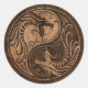 Yin Yang Dragons with Wood Grain Effect Classic Round Sticker