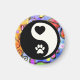 Custom magnet with heart and paw yin yang with a bright colourful background.