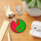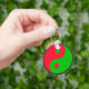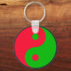 Yin Yang Keychain. This keychain is decorated with a red and green Yin Yang symbol. "In Taoist philosophy, yin and yang arise together from an initial quiescence or emptiness and continue moving in tandem until quiescence is reached again. For instance, dropping a stone in a calm pool of water will simultaneously raise waves and lower troughs between them, and this alternation of high and low points in the water will radiate outward until the movement dissipates and the pool is calm once more. Yin–yang, thus, are always opposite and equal qualities. Further, whenever one quality reaches its peak it will naturally begin to transform into the opposite quality: grain that reaches its full height in summer (fully yang) will produce seeds and die back in winter (fully yin) in an endless cycle" - Wikipedia. A great gift idea.
