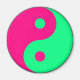 Yin Yang Magnet. This magnet is decorated with a rose and spring green Yin Yang symbol. "In Taoist philosophy, yin and yang arise together from an initial quiescence or emptiness and continue moving in tandem until quiescence is reached again. For instance, dropping a stone in a calm pool of water will simultaneously raise waves and lower troughs between them, and this alternation of high and low points in the water will radiate outward until the movement dissipates and the pool is calm once more. Yin–yang, thus, are always opposite and equal qualities. Further, whenever one quality reaches its peak it will naturally begin to transform into the opposite quality: grain that reaches its full height in summer (fully yang) will produce seeds and die back in winter (fully yin) in an endless cycle" - Wikipedia. A great gift idea.