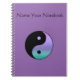 Personalised Yin Yang Symbol Notebook. A lavender to aqua gradient and black yin yang symbol of balance, harmony, wholeness and completion, and the title of your choice. Name your notebook whatever you like and fill it in at the prompt. Customise as desired.