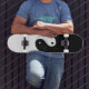 Skate Yin-Yang. The concept of Yin and Yang is an ancient Chinese philosophy that describes the interdependence and complementarity of opposite forces in nature and life. The essence of Yin-Yang lies in the dynamic harmony between these polarities, recognizing that each aspect contains the seed of the other. This symbology offers a profound understanding of the duality inherent in the universe, emphasizing the constant change and balance necessary for harmonious existence.