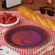 Purple and red heart yin yang Valentine's Day plates.