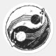 Telluride Bluegrass Festival (Telluride, CO) logo, often called the 'yinjo yangolin' as the banjo and mandolin are two of the most prominent instruments in bluegrass music, although the picture could obviously represent most any type of stringed instrument.