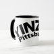 Bold "YINZER Pittsburgh" design wrapping around popular combo mug - a great coffee cup for any Pittsburgher!