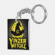 This quirky keychain features a whimsical spray paint inspired print in black and yellow with the bold words Yinzer Witchz.