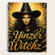 This quirky black and yellow planner features a whimsical spray paint inspired print of a Witch surrounded by a cloudy sky and the words Yinzer Witchz.