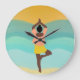 Yoga bei Sonnenaufgang am Meer Large Clock