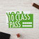 Yoga Business Card 10 Class Pass Card business card with a green and white colour scheme and 10 square punch/stamp placeholder. Fully customisable business card that can be used to promote your yoga practice and track their classes. Perfect for a yoga studio, pilates studio, yoga instructor, or yoga trainer.