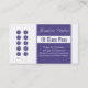 Yoga Business Card 10 Class Pass customer loyalty card template. Fully customisable yoga studio business card with 10 class pass on the back. Reward your customers for their loyalty with a free class or discounted class rates. Use both sides for more information and change the reward to one of your choice. 10 punch hole/stamp placeholder.