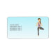 Destei's illustration of a pretty brunette woman doing yoga. The woman is doing the tree pose and her hands are in namaste. She is wearing a lilac shirt and dark grey pants. The background is a lovely blue gradient. There is also a personalizable text area.