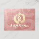 Yoga Studio Meditation Instructor / Life Coach / Healer / Reiki Master / Massage Therapy Gift Certificate Card Template - Elegant Calligraphy Faux Gold Foil Yoga Meditation Easy Pose / Sukhasana Pose with ZEN Symbol and OM Symbol on Rose Gold Texture Background.