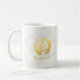 Yoga Studio Meditation Instructor / Life Coach / Healer / Reiki Master / Massage Therapy Mugs Templates - Elegant Calligraphy Faux Gold Foil Yoga Meditation Easy Pose / Sukhasana Pose with ZEN Symbol on OM Symbol White Paper Background.