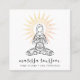 A yoga instructor business card featuring a serene woman in lotus pose surrounded by gold rays of sunlight, with her name in a pretty modern script signature type. Type in the centre of sun rays on the reverse side of the card.
