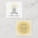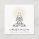 A yoga instructor business card featuring a serene woman in lotus pose surrounded by gold rays of sunlight, with her name in a pretty modern script signature type. Type in the centre of sun rays on the reverse side of the card.