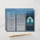 Yoga Fitness Studio / Meditation Instructor / Personal Trainer / Life Coach / Healer / Reiki Master / Massage Therapy Tri-Fold Brochures Template - Modern Faux Light Teal Blue Green Gold Foil Bodhi Leaf Cutting as Yogi in Easy Seat pose / YOGA Easy Pose / Sukhasana Pose on Dark Blue Wave Pattern Grunge Background.