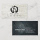 Modern Yoga Studio Meditation Instructor / Life Coach / Healer / Reiki Master / Massage Therapy 5 Class Pass Loyalty Card Template - Elegant Black and White Calligraphy Yoga Meditation Pose / Easy Pose / Sukhasana Pose with ZEN Symbol and Bodhi Leaf on Vintage White Wood Background.