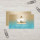 Yoga Instructor Modern Gold Lotus Teal Glitter Business Cards.
