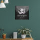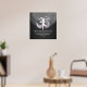 Yoga Studio Meditation Instructor / Life Coach / Healer / Reiki Master / Massage Therapy Quotes Poster - Modern Black & Silver Yoga Meditation Pose / Tree Pose (Vrksansana) and OM Symbol on Black Leather Texture Background.