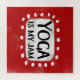 "Yoga Is My Jam" is a fun text design with a white accent shape surrounded by white whimsical textured dots.