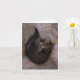 A blank greeting card featuring a print of an original photograph taken by Kelly W. Patterson of a kitten sleeping on a couch in a contorted, yoga-like pose. This cute little beast is sure to create a relaxing ad spiritual mood that will brighten anyone's day