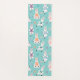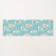 Fun llama yoga mat design featuring our hand-drawn yoga llama characters balancing in different yoga poses. Personalise with your name. The reverse side of the yoga mat features our llama yoga repeat pattern on an aqua background. Text colour and background colours can be changed to suit your preference. Perfect gift for llama lovers and yoga lovers.