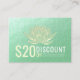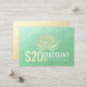 Yoga Studio Meditation Instructor / Life Coach / Healer / Reiki Master / Massage Therapy Discount Coupon Loyalty / Gift Certificate Card Templates - Modern Elegant Faux Gold Foil Lotus on Green Gold Texture Background.