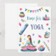 Discover a beautifully designed card that captures the serenity and harmony of yoga! At the center of the design is a meditating woman in a relaxed pose, surrounded by loving details such as a yoga mat, gently blooming flowers, floating hearts, a soothing candle, delicate leaves, and a decorative garland.