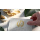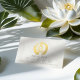 Yoga Studio Meditation Instructor / Life Coach / Healer / Reiki Master / Massage Therapy 5 Class Pass Loyalty Card Template - Elegant Calligraphy Faux Gold Foil Yoga Meditation Easy Pose / Sukhasana Pose with ZEN Symbol on OM Symbol White Paper Background.