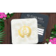 Yoga Studio Meditation Instructor / Life Coach / Healer / Reiki Master / Massage Therapy 10 Class Pass Loyalty Card Template - Elegant Calligraphy Faux Gold Foil Yoga Meditation Easy Pose / Sukhasana Pose with ZEN Symbol on OM Symbol White Paper Background.