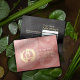 Yoga Studio Meditation Instructor / Life Coach / Healer / Reiki Master / Massage Therapy 10 Class Pass Loyalty Card Template - Elegant Calligraphy Faux Gold Foil Yoga Meditation Easy Pose / Sukhasana Pose with ZEN Symbol and OM Symbol on Rose Gold Texture Background.
