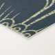 Modern Chic Faux Gold Foil Floral Mandala Symbols on Navy Blue Wave Pattern Background.