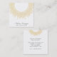 A yoga and/or meditation instructor business card featuring a modern gold sun mandala with sun rays, with a pretty, modern script signature type.