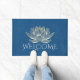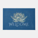 Yoga Studio Meditation Instructor / Life Coach / Healer / Reiki Master / Massage Therapy Welcome Doormat Templates - Modern Elegant Faux Gold Lotus on PANTONE 19-4052 TCX Classic Blue Colour Grunge Background.
