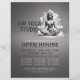 Modern Yoga Fitness Studio / Meditation Instructor / Personal Trainer / Life Coach / Healer / Reiki Master / Massage Therapy Open House Flyer Template - The Woman Is Meditating In The Lotus Position.