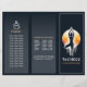 Modern Yoga Fitness Studio / Meditation Instructor / Personal Trainer / Life Coach / Healer / Reiki Master / Massage Therapy Tri-Fold Brochures Template - Modern Yoga Meditation Pose / Tree Pose (Vrksansana) With Full Moon on Dark Blue Colour Background.